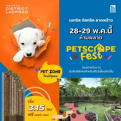 𝗠𝗲𝘁𝗿𝗶𝘀 𝗗𝗶𝘀𝘁𝗿𝗶𝗰𝘁 𝗟𝗮𝗱𝗽𝗿𝗮𝗼 คอนโด PET FRIENDLY สุดอลังงง ใจกลาง 5 แยกลาดพร้าวเตรียมจัด EVENT ใหญ่ ” PETSCAPE FEST” ที่ Sales Gallery ปากซอยลาดพร้าว 6 ใกล้ MRT พหลโยธิน