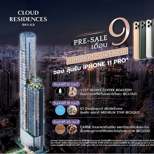 CLOUD Residences SKV 23 จัดโปรพิเศษสุดๆ “PRESALE เดือน 9 ชมคอนโดชิมร้านดัง”