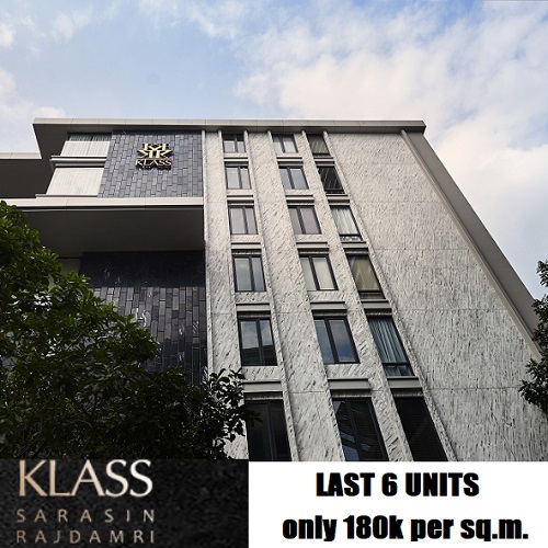 KLASS SARASIN RAJDAMRI คอนโดฟรีโฮลด์ระดับหรูทำเลซูเปอร์ไพรม์ย่านหลังสวน จัดโปรโมชั่น 6 ห้องสุดท้าย หั่นราคาเท่าพรีเซลล์ 180K ต่อ ตร.ม สวนกระแสคอนโดทำเลหลังสวน – สารสิน ราคาพุ่ง