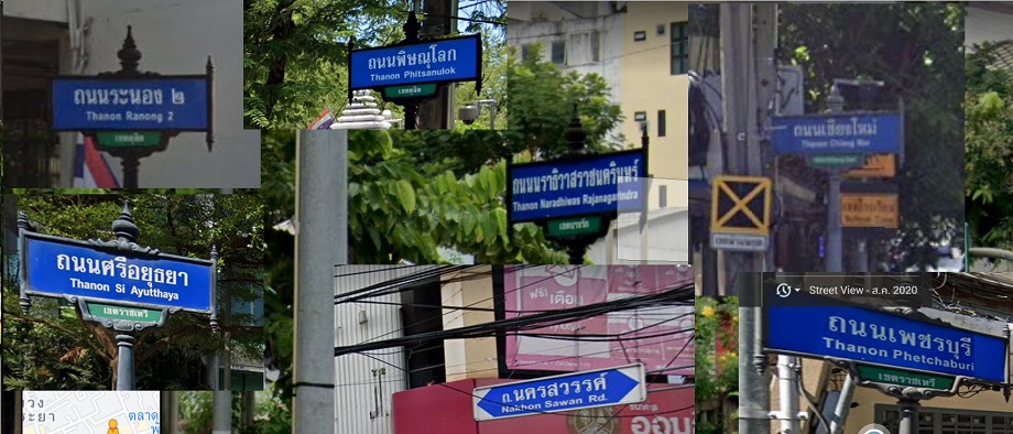 6.ถนนระนอง – เป็นถนนเส้นเล็กๆสั้นๆ 2 เส้น 1 และ 2 ตั้งขนานกันแถวๆถนนพระราม 5 พื้นที่ดุสิต