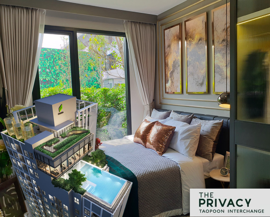 The PRIVACY taopoon interchange ขายด้วยราคาเริ่มต้น 1.89 ล้าน ขนาดห้องเริ่มต้นที่ studio 22.25 ตารางเมตร / 1bed 26.5 – 29.5 ตารางเมตร / 1 bed plus 34.5 ตารางเมตร / 2bed 2 bath แบบมีอ่างอาบน้ำ 49.25-50.25 ตารางเมตร  ที่จอดรถ 43%