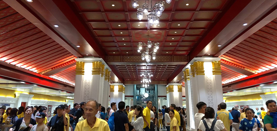 สถานีถัดมาซึ่งสำหรับผมแล้วนับเป็นสถานีที่สวยที่สุด ไม่ใช่แค่ในบรรดา 5 สถานีเปิดใหม่ แต่เทียบกับสถานีรถไฟฟ้าของไทยทั้งหมดก็ยังจัดได้ว่าสวยที่สุดอยู่ดี นั่นก็คือสถานีสนามไชยครับ โดยสถาปัตยกรรมภายในสถานีนั้นออกแบบมาให้คล้ายกับพระราชวัง มีความโอ่อ่าหรูหราสวยงามสุดๆ ทางออกฝั่งนึงอยู่บริเวณด้านหน้ามิวเซียมสยามแบบที่ขึ้นมาแล้วเจอเลย โดยมีทางออกฝั่งตรงข้ามกับมิวเซียมสยาม บริเวณหน้าโรงเรียนวัดราชพิธอยู่ด้วย ส่วนทางออกอีกฝั่งนั้นมี 3 ทางออก อยู่รอบบริเวณวงเวียนหน้าสถานีตำรวจนครบาล พระราชวัง เดินไปปากคลองตลาดได้ง่าย