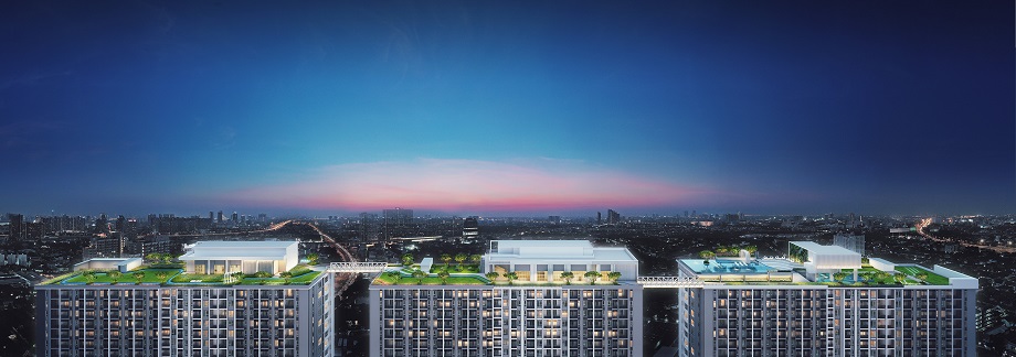 มีจุดเด่นที่พื้นที่กว้างที่ดินโครงการเกือบ 10 ไร่ มีทั้งหมด 3 อาคาร แต่มียูนิตเพียง 1,302 + 7 ยูนิต (เมื่อเทียบกับคอนโดเพื่อนบ้านติดรถไฟฟ้า ที่ยูนิตพอๆกัน ที่นี่ที่ดินใหญ่กว่าเกือบ 1 เท่า) และเป็นที่เดียวในทำเลนี้ที่เอาส่วนกลางไปไว้ชั้นบนสุด (ชั้น 18) เชื่อมต่อกันทั้ง 3 ตึก เป็นก้อน FACILITY ขนาดใหญ่พร้อม JOGGING TRACK ยาวกว่า 300 เมตร และ INFINITY EDGE SKYPOOL ที่มีความยาวถึง 30 เมตร