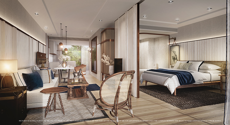 นอกจากนี้ทุกรายละเอียดของการออกแบบโครงการฯ ได้รับการรังสรรค์ขึ้นอย่างพิถีพิถัน เพื่อการอยู่อาศัยที่สมบูรณ์แบบในทุกด้าน ไม่ว่าจะเป็นการออกแบบให้ระเบียงของห้องให้มีความลึกและกว้างพอที่ทำให้ผู้อาศัยดื่มด่ำกับบรรยากาศริมทะเลได้อย่างเต็มที่ในทุกช่วงเวลา การออกแบบให้ห้องเปิดรับแสงในเวลากลางวัน ตลอดจนการเลือกใช้เฟอร์นิเจอร์สไตล์โคโลเนียลที่มีกลิ่นอายของความโมเดิร์น โดยเฉพาะการใช้หวายและมุมโค้งที่ออกแบบด้วยความประณีต ซึ่งเฟอร์นิเจอร์เหล่านี้จะนำมาจัดแสดงในห้องตัวอย่าง ให้ผู้ที่สนใจได้รับชมภายใน เซลส์ แกลเลอรี บริเวณหน้าโครงการฯ ด้วย