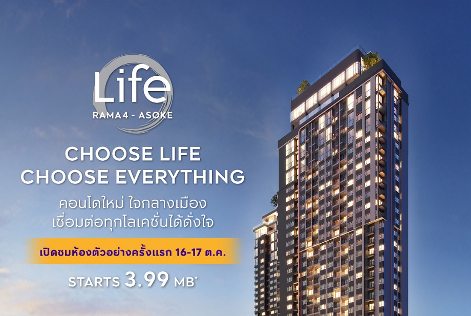 - ส่ง LIFE พระราม 4-อโศก คอนโดมิเนียมดีไซน์ใหม่กับคอนเซ็ปต์ CHOOSE EVERYTHING กับชีวิตที่ไม่ต้องเลือก…เพราะคุณได้ทุกอย่าง ใจกลางพระราม 4 – อโศก เริ่ม 3.99 ล้านบาท