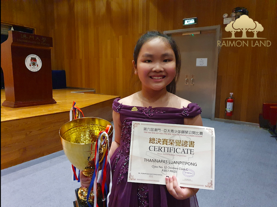 1st prize winner และถ้วยคะแนนรวมสูงสุดอันดับที่ 1 จากผู้เข้าแข่งขันรอบสุดท้ายกว่า 110 คน รุ่นอายุไม่เกิน 10 ปี (children class C) รายการ Macau-Asia Pacific Youth Piano Competition 2019